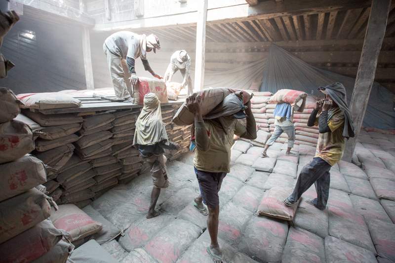 Jangan bermimpi bahwa mereka bekerja dalam kondisi yang nyaman dan aman. Segala sesuatu mereka lakukan secara manual. Tanpa dilengkapi perlengkapan kerja yang sesuai dengan kaidah keselamatan kerja, para pekerja angkut itu secara bergantian mengangkut semen diatas pundak mereka.