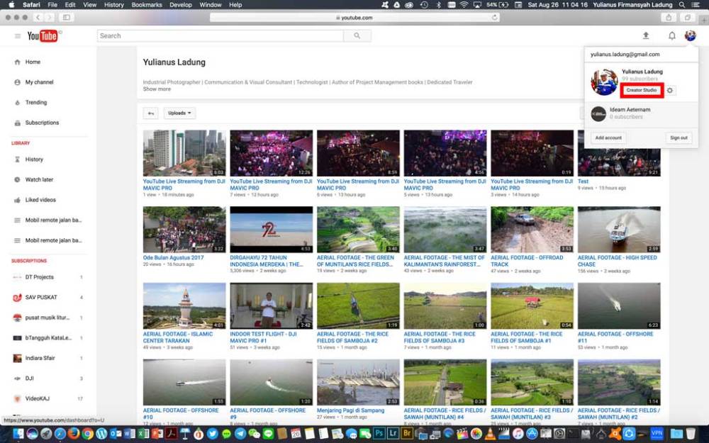 Masuk ke dalam pilihan Creator Studio.
