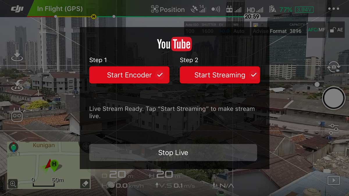 Proses Encoding telah selesai, maka DJI GO akan mempersiapkan tayangan langsung. Durasi persiapan bisa sesuai 60 detik atau lebih.