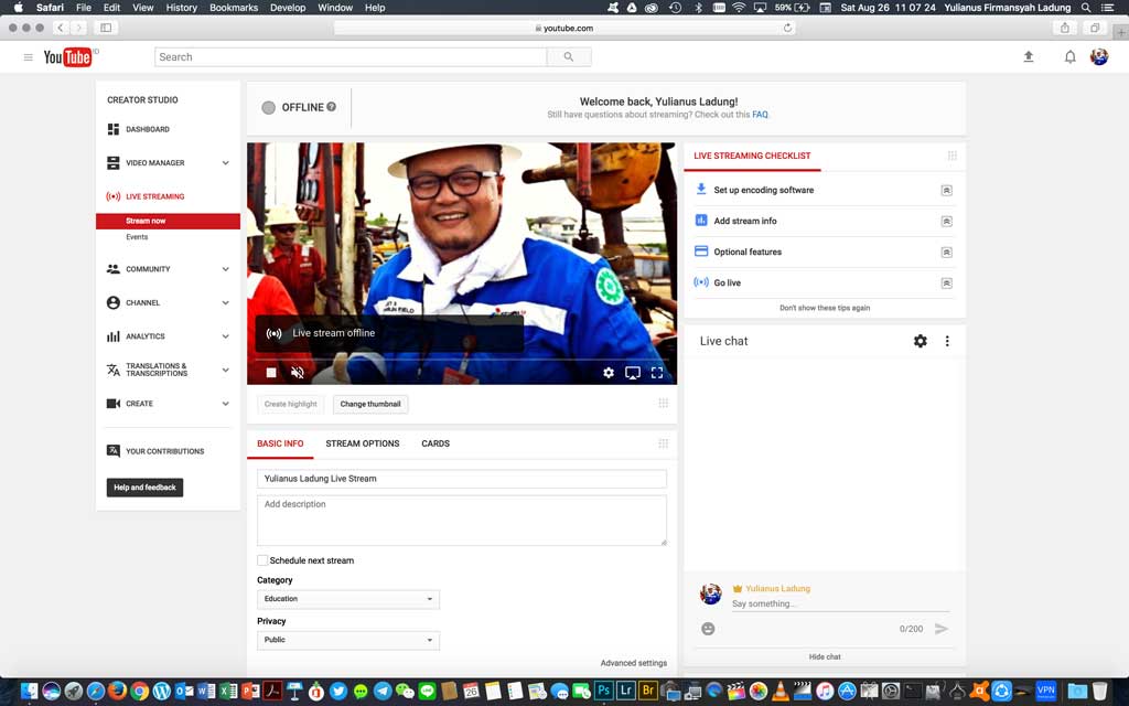 Setelah Sign In, untuk YouTube tersedia pilihan untuk Go Live.