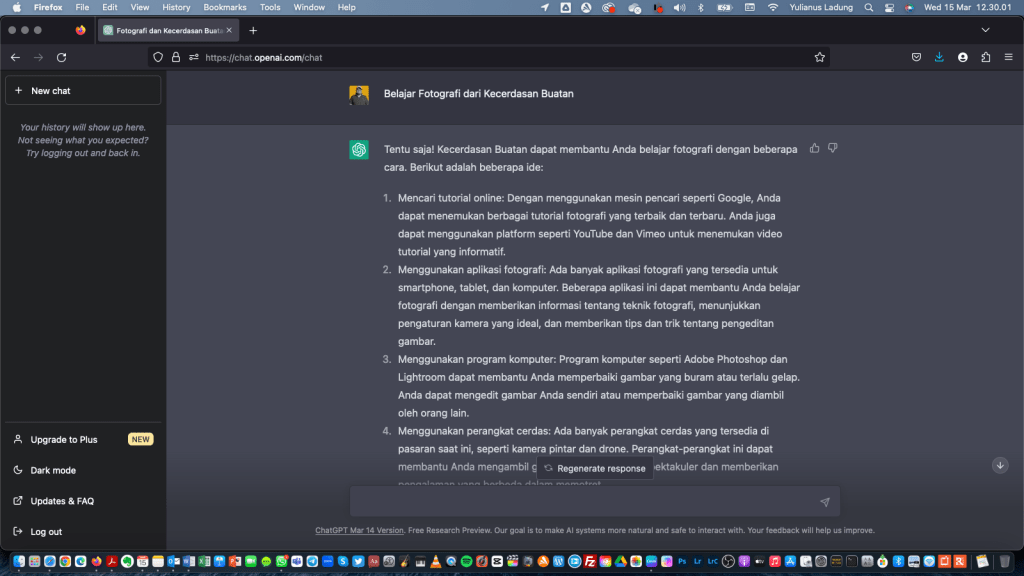 Ada 45 topik di seputar Fotografi yang saya tanyakan ke ChatGPT, yaitu: