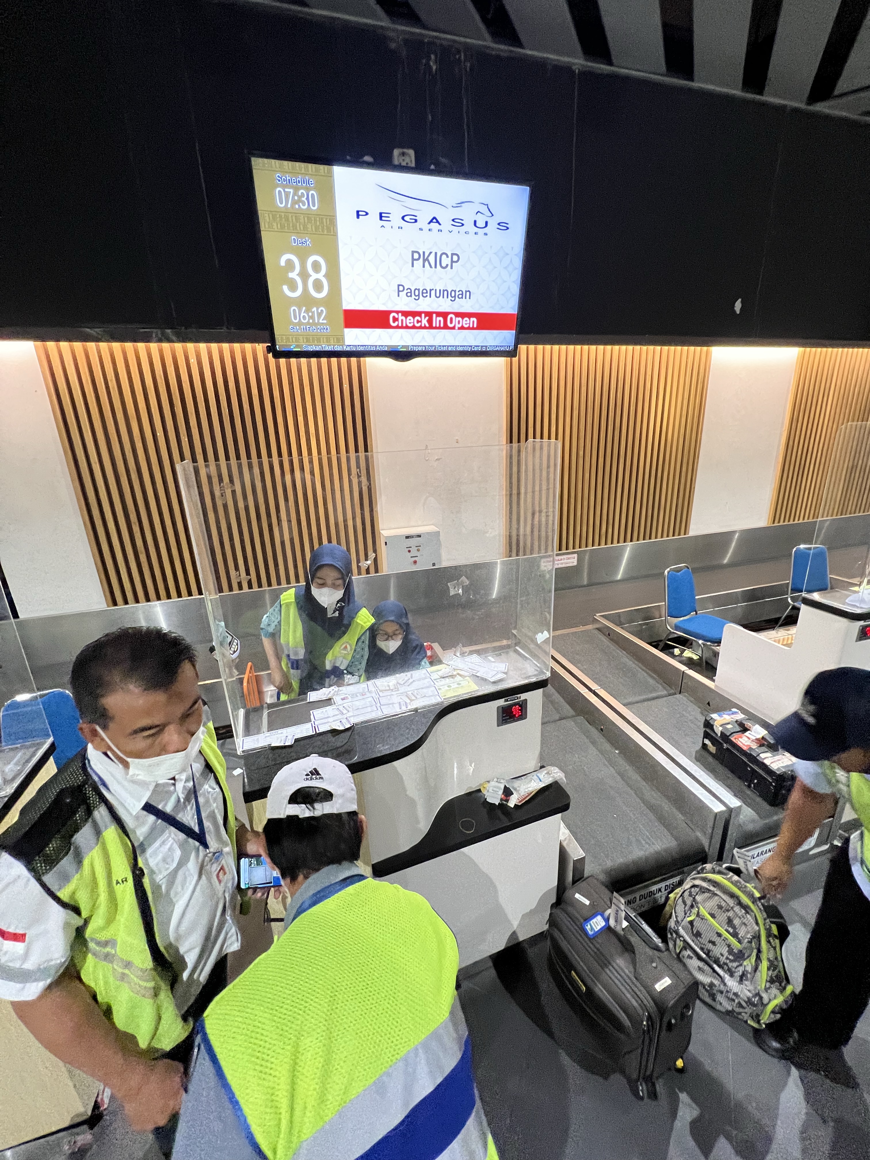 Proses check-in pagi itu lumayan cepat, karena kami semua akan menumpang pesawat sewaan jadi lokasi counter check-in kami tidak menggunakan counter yang lazimnya digunakan oleh pesawat komersial biasa.