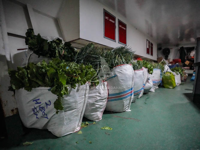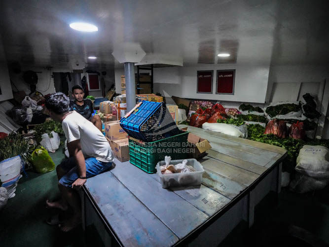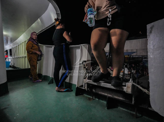 Ketika kapal merapat di pelabuhan, kami tidak perlu buru-buru turun dari kapal dan menunggu seluruh penumpang, penjemput serta para pekerja angkut selesai dengan urusannya masing-masing di atas kapal. Metode menunggu itu sangat disarankan oleh kawan-kawan kami lainnya yang sudah terbiasa menggunakan jasa angkutan penyeberangan laut.